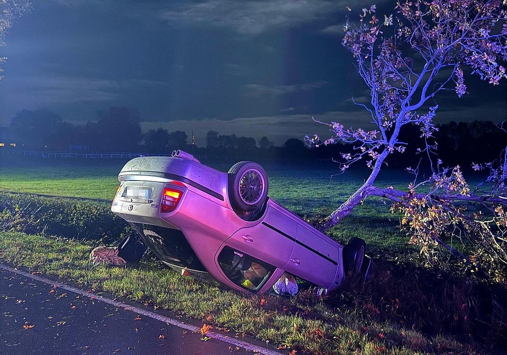 Aurich. Bei einem Verkehrsunfall in Aurich-Dietrichsfeld hat sich ein Auto überschlagen. Der Wagen kam von der Dietrichsfelder Straße ab, kollidierte mit einem Baum und landete schließlich kopfüber in einem Seitengraben.
