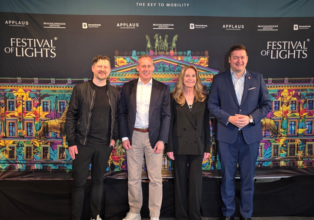 Im Rahmen eines Pressetermins haben Birgit Zander (Geschäftsführerin und Gründerin Festival of Lights), Anthony Bandmann (CEO Volkswagen Financial Services), Braunschweigs Oberbürgermeister Dr. Thorsten Kornblum und Paul Kunze (Geschäftsführer Applaus Kulturproduktionen GmbH) das Event am heutigen Freitag vorgestellt.
