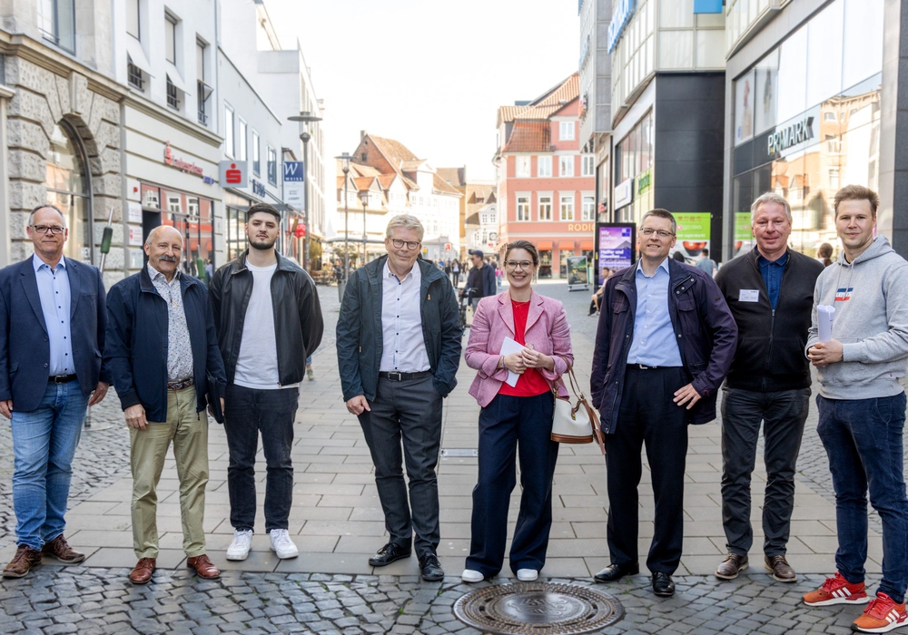 Zu den erfassten Handlungsfeldern gehören Themen wie Sauberkeit, Stadtgrün, Stadtmöblierung, Beleuchtung, Beschilderung und Verkehrsführung. Erste positive Signale habe es bereits nach der Vorbegehung im November 2024 sowie beim Rundgang selbst gegeben. So konnte die Stadtverwaltung auf Hinweis des AAI die Grünfläche am Parkhaus Wallstraße pflegen, einen fehlerhaft befestigten Wasserspender am Sack austauschen und die Wölkchen am Friedrich-Wilhelm-Platz, in denen sich bei Regen Wasser sammelte, abbauen. Sie befreite zudem einen verstopften Gully in der Neuen Straße, reinigte die beleuchteten Eingangsschilder zum Rathaus-Neubau auf dem Bohlweg, tauschte schiefe und beschmierte Verkehrsschilder in der Neuen Straße aus und säuberte den Welfenhof von Graffiti-Tags und Aufklebern. Der zentrale Ordnungsdienst überprüfte im Anschluss an den Rundgang im Mai die Fahrradständer am Friedrich- Wilhelm-Platz und entfernte markierte Fahrräder, die nicht fristgerecht abgeholt wurden. Zusätzlich sind eine Säuberung der Parkautomaten, die Reinigung des Wildkrautbewuchses vor Galeria an der Neuen Straße und ein Austausch der Straßenlaternen am Schild ab 2026 geplant. Auch soll die Kooperation der Stadt mit der VHS Arbeit und Beruf GmbH zur Reinigung von Objekten im öffentlichen Raum, darunter Sitzbänke, Schilder und Schaltkästen, wieder aufgenommen werden.