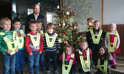 Kinder schmücken Weihnachtsbaum bei der Polizei