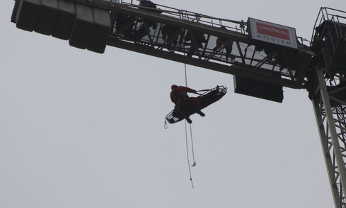 Herzinfarkt in 80 Metern Höhe: Feuerwehr übte Höhenrettung