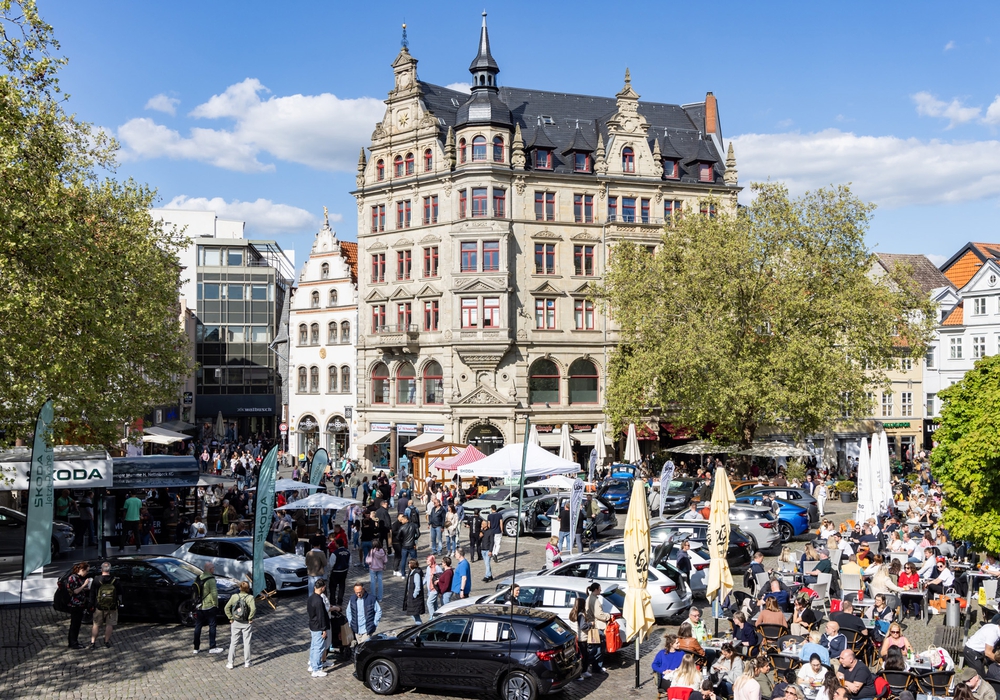 Der Stadtfrühling verwandelt die Plätze der Innenstadt in eine Mobilitätsbühne, auf der Besucherinnen und Besucher die neuesten Fahrzeugmodelle entdecken und ausprobieren können. Foto: Braunschweig Stadtmarketing GmbH/Philipp Ziebart
