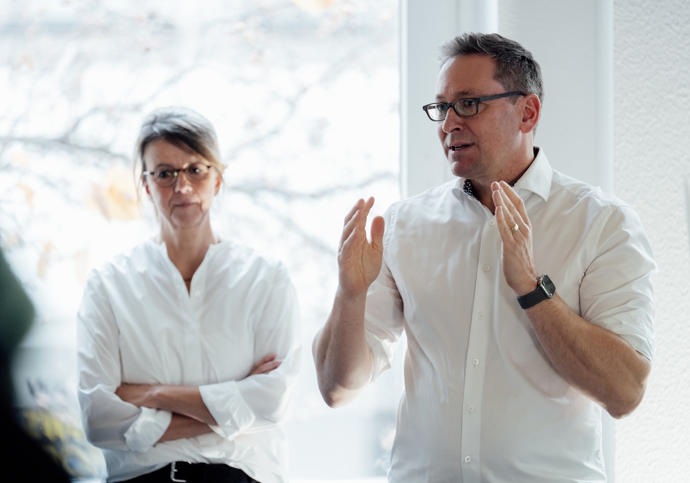 Die Architekten Julia und Lars Hidde von HTP Hidde Architekten GmbH. Foto: Perschmann Gruppe / Jan Harenberg