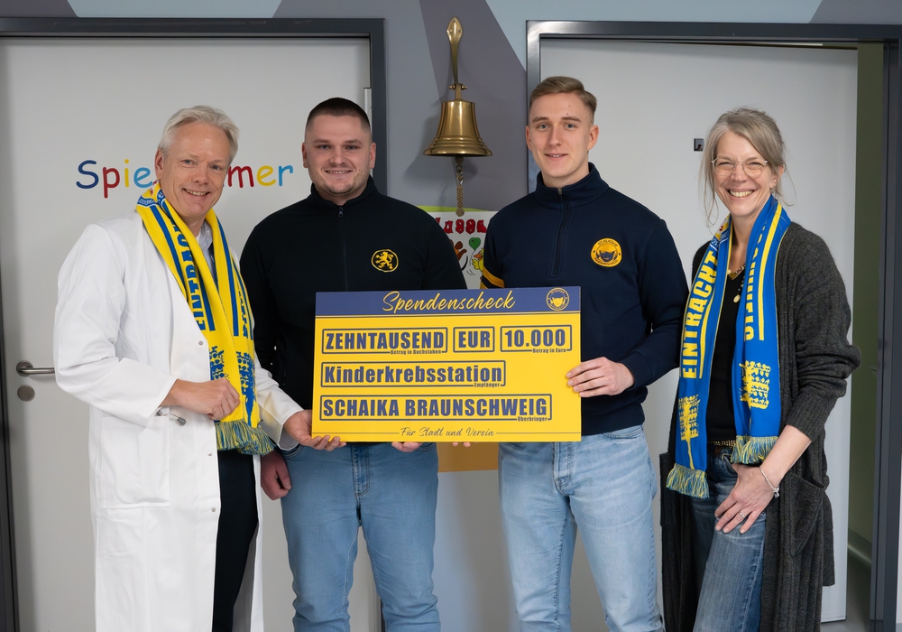Braunschweig. Die Kinderonkologie des Städtischen Klinikums Braunschweig hat eine Spende in Höhe von 10.000 Euro von den Ultras „Schaika Braunschweig“ erhalten. Die Übergabe erfolgte durch die Gruppenmitglieder Luca F. und Leon M., die den symbolischen Spendenscheck an Dr. Andreas Beilken, Chefarzt der Klinik für Kinder- und Jugendmedizin, überreichten. Darüber berichtet das Klinikum in einer Pressemeldung.