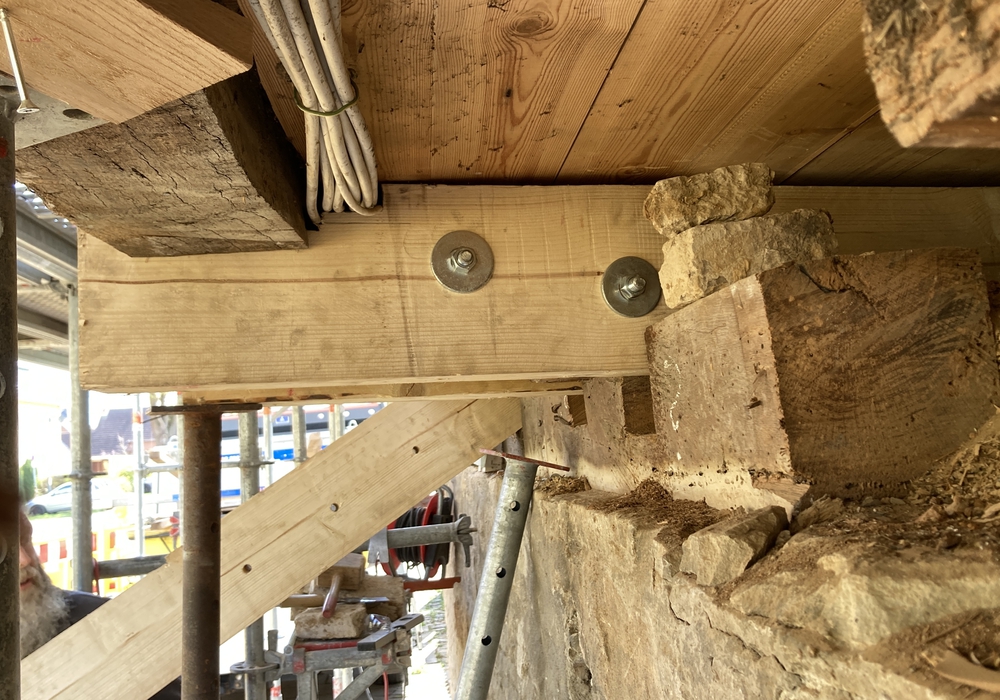 Bei den Untersuchungen stieß man auf Holzschäden am Tragwerk, welche tiefere Eingriffe in die Bausubstanz erforderlich machen, um den Pavillon dauerhaft standsicher und nutzbar zu machen. Derzeit ertüchtigen die Zimmerleute Deckenbalken, Schwellhölzer und andere Holzbauteile. Einige müssen ganz ausgetauscht werden.