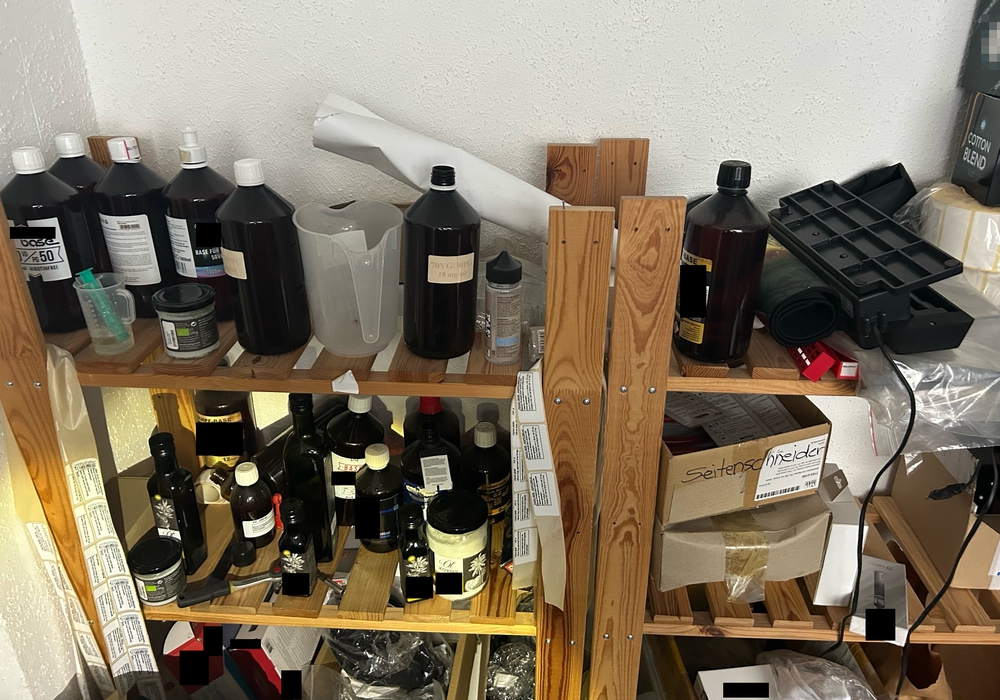Außerdem wurden 83 weitere leere Behältnisse sichergestellt, die ebenfalls zur Befüllung von unversteuertem Liquid aufgemacht waren. Diese teilweise handschriftlich beschrifteten Behältnisse sowie weiteres Material, wie Dosierspritzen, ließen die Zöllner zu der Annahme kommen, dass hier nicht nur illegal Tabakwaren vertrieben, sondern auch hergestellt wurden. Das Liquid wurde sowohl hinter dem Ladentresen als auch im anliegenden Lager festgestellt. Ein Teil der Verpackungen wies zudem ein abgelaufenes Mindesthaltbarkeitsdatum auf.