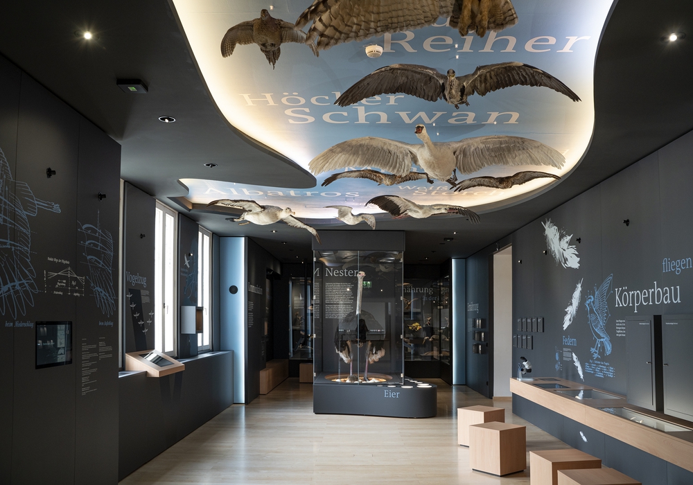 „Vögel waren immer ein zentrales Thema in unserer Dauerausstellung und wurden von unserem Publikum vermisst, es wurde mindestens einmal pro Woche danach gefragt.“ Besonders in Erinnerung geblieben war vielen Besuchern eine unter der Decke inszenierte Vogelfluglinie, die im neuen Vogelsaal wieder aufgegriffen wird.