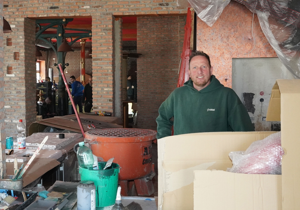Baustelle vor und hinter der Tür: Jens Kluck arbeitet an der Eröffnung des Restaurants "Herzschlag" am Hagenmarkt in Braunschweig.. Foto: Matthias Kettling