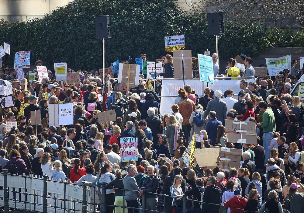 Vor dem Reichstagsgebäude in Berlin haben sich am Mittwoch Hunderte Menschen versammelt, um gegen die Kürzung der Vergütung psychotherapeutischer Leistungen zu protestieren.