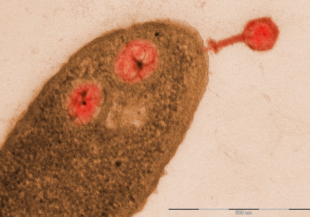 Eine weitere Strategie gegen bakterielle Infektionen erkunden Wissenschaftler am HZI in Braunschweig und seinen Standorten in Würzburg und Greifswald: Sie erforschen das therapeutische Potenzial von Bakteriophagen, kurz Phagen genannt. Dies sind Viren von Mikroben. Sie erkennen präzise ihre Wirtszellen, injizieren ihr Erbgut und vermehren sich darin, bis die Bakterienzelle platzt und neue Phagen freisetzt. Für Menschen sind Phagen harmlos, da sie sich in menschlichen Zellen nicht vermehren. In Gewässern, im Boden und sogar in unserem Darm kommen sie in unvorstellbarer Zahl vor und vermehren sich in den dort lebenden Bakterien.