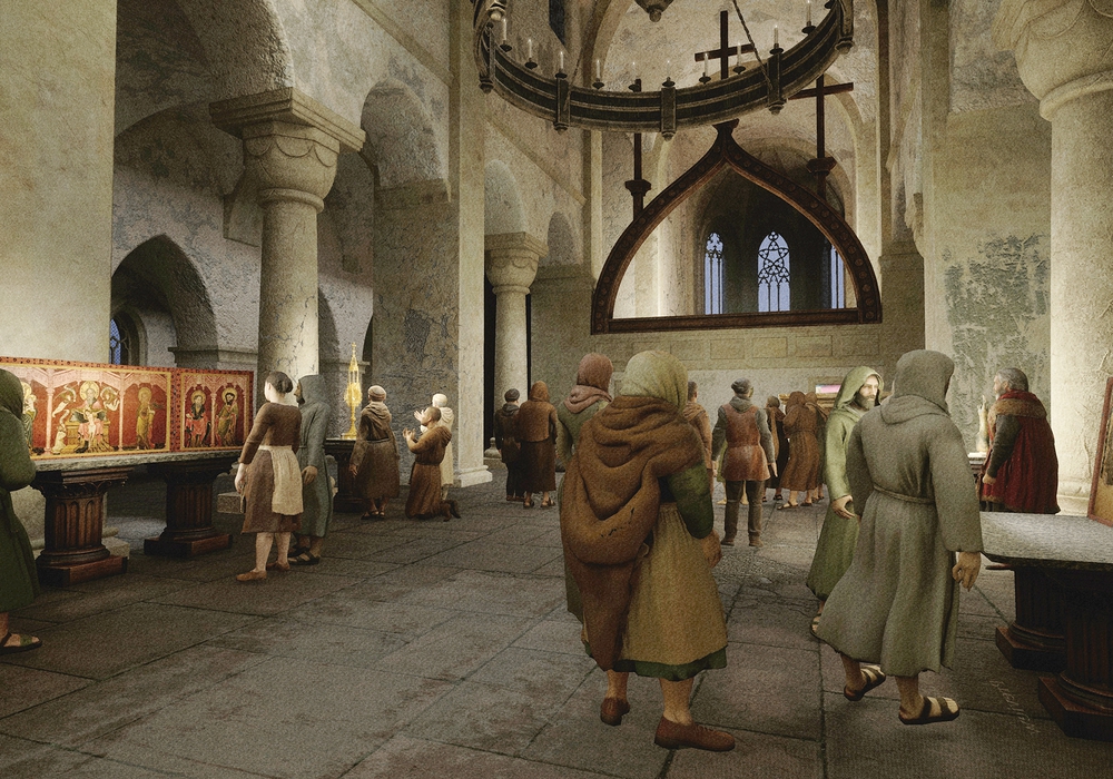 Ein zentraler Schritt war die Erstellung eines 3D-Modells des Goslarer Doms auf Grundlage historischer Bauzeichnungen aus dem 19. Jahrhundert, insbesondere der Arbeiten von Eduard August Emil Mühlenpfordt, der von 1801 bis 1857 lebte. Ergänzt durch Vergleiche mit zeitgenössischen Kirchenbauten und der noch erhaltenen Domvorhalle entstand ein detailreiches, wahrscheinliches Abbild des Doms, wie er vor seinem Abbruch ab 1819 ausgesehen haben könnte. Wer künftig auf dem Domplatz steht, kann mit DOM:digital das verschwundene Bauwerk virtuell wieder auferstehen lassen.