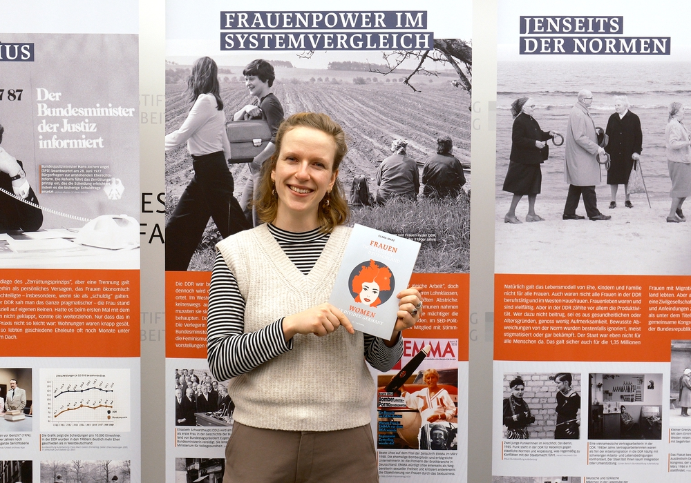 Die Kuratorin Clara Marz, Projektmanagerin im Bereich Jahresausstellungen und Kommunismusgeschichte der Bundesstiftung zur Aufarbeitung der SED-Diktatur, spricht am Mittwoch, 14. Januar, um 17 Uhr im Bürger Museum über die Entstehung der 20 Ausstellungstafeln und das Anliegen, die vielfältigen Erfahrungen von Frauen sichtbar zu machen und deren deutsch-deutsche Lebenswirklichkeiten mit den Gemeinsamkeiten und Unterschieden zu betrachten.