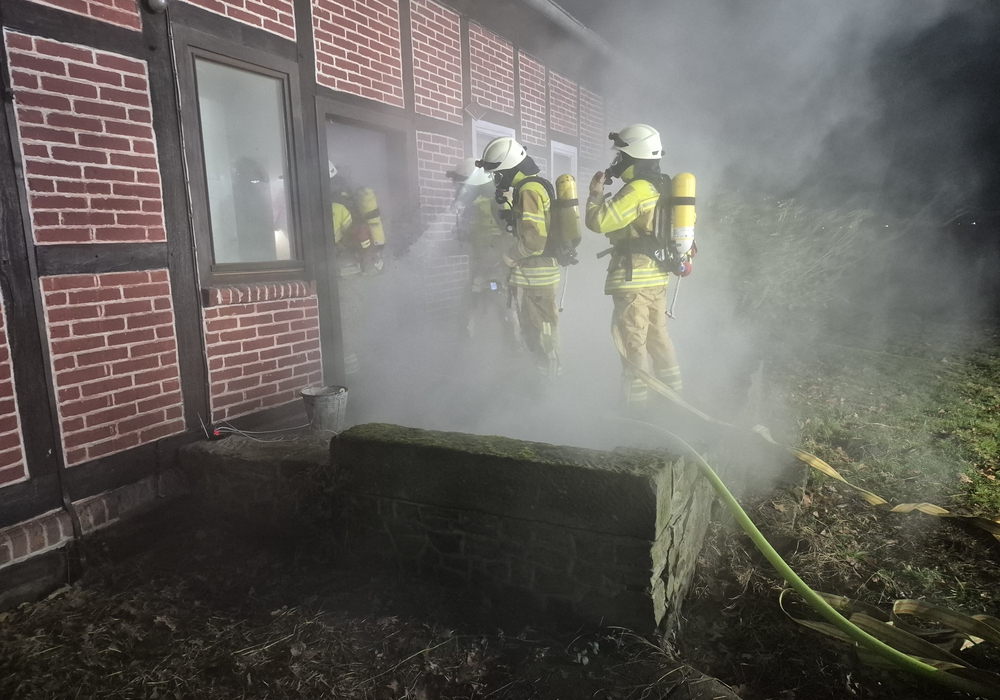 Einsatzkräfte unter Atemschutz gingen in das Gebäude. Foto: Freiwillige Feuerwehr Seershausen / Mark Ragwitz