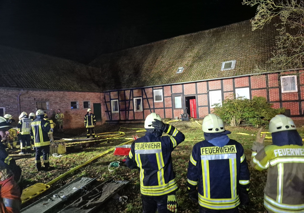 Insgesamt waren 75 Kräfte der Feuerwehr im Einsatz. Für die Einsatzausarbeitung zeichneten der Seershäuser Ortsbrandmeister Mark Ragwitz und sein Stellvertreter Dennis Homann verantwortlich. Gemeinsam mit Benjamin Koch (Ohof), David Laske (Meinersen) und dem stellvertretenden Samtgemeindebrandmeister Niko von Köckritz beobachteten sie das Geschehen. „Wir freuen uns, dass der Eigentümer Andreas Schuster uns die Möglichkeit gegeben hat, in dem grade zur Renovierung anstehenden Gebäude so realistisch üben zu können.“ Im Anschluss an die Übung gab es noch eine gemeinsam Nachbesprechung mit einem Imbiss im Seershäuser Feuerwehrwehrhaus.