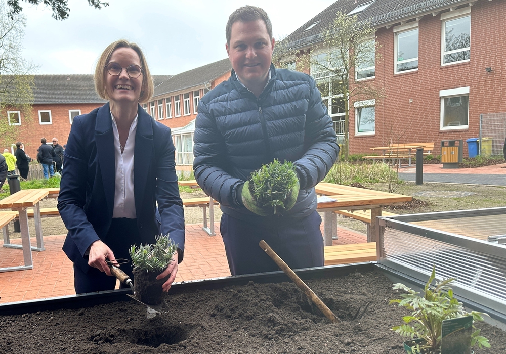 Auch der Bereich Hauswirtschaft und Ernährung wird durch die neuen Hochbeete sowie das Obst- und Gemüsebeet gestärkt. Schülerinnen und Schüler können den Weg von Lebensmitteln vom Anbau bis zur Verarbeitung nachvollziehen. Selbst angebaute Kräuter, Obst und Gemüse schaffen einen direkten Bezug zu gesunder Ernährung und fördern ein nachhaltiges Bewusstsein für Lebensmittel, so der Landkreis. Selbst angebautes Obst, Gemüse und Kräuter können in den Küchen verarbeitet werden.