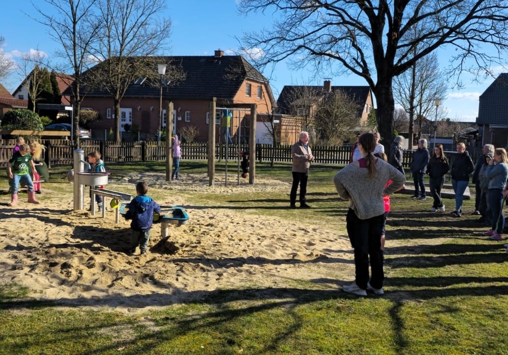 Zahlreiche Kinder, die mit ihren Eltern und Großeltern gekommen waren, nahmen das neue Spielgerät sofort in Beschlag, so dass die Matschanlage die Bewährungsprobe gleich bestand. Stärken konnten sich alle dann noch mit Bratwurst, Süßigkeiten und Getränken.