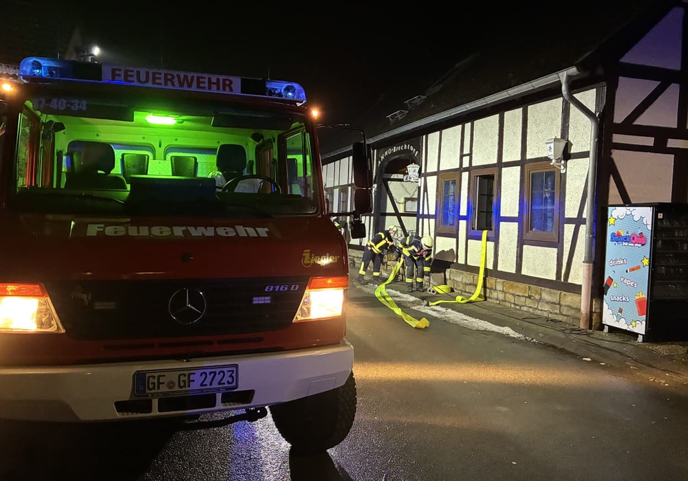 In Absprache mit der Polizei übergab die Feuerwehr die Einsatzstelle nach rund 90 Minuten an die zwischenzeitlich eingetroffenen Besitzer der Gaststätte. Nach Einschätzung der Feuerwehr muss von einem längeren Wasseraustritt aus einer Leitung im Obergeschoss ausgegangen werden, was schließlich zur kompletten Durchnässung der Gebäudehülle und zum Wasseraustritt aus dem Mauerwerk der Gaststätte führte.