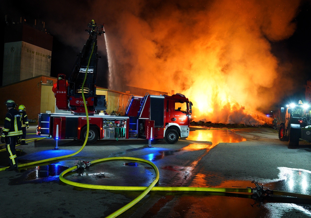 Laut einer Pressemitteilung der Feuerwehr Gifhorn habe sich das Feuer mehrerer brennender Strohballen auf eine Lagerhalle ausgebreitet. Innerhalb kurzer Zeit haben die Flammen auf die Halle übergegriffen, teilte die Feuerwehr mit.