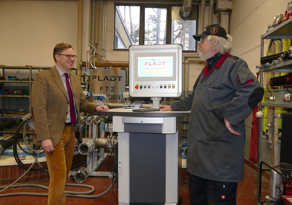 Bernd Hauer, Gerätewart in der Feuerwehrtechnischen Zentrale in Gifhorn, erklärte Landrat Dr. Andreas Ebel die neue Technik des Pumpenprüfstandes. | Foto: Landkreis Gifhorn