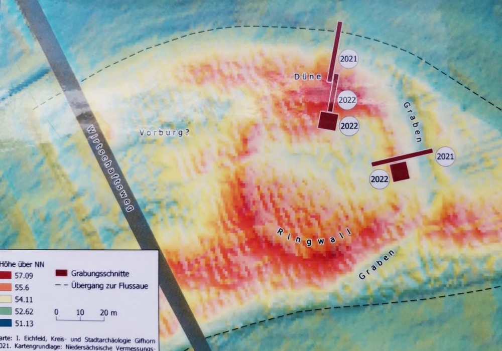 Westerbeck. Am gestrigen Samstag fand der „Tag der offenen Grabung“ auf der frühmittelalterlichen Ringwallanlage der Sassenburg bei Westerbeck in der Nähe des Knotenpunktes der B188 - L289 statt, die der Gemeinde Sassenburg den Namen gibt. Hierüber berichtet die Bürger-Interessen-Gemeinschaft (B.I.G.) Sassenburg in einem Pressetext.