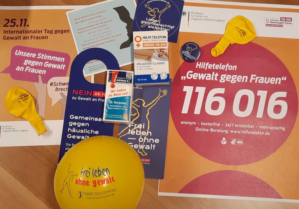 Im Anschluss wird die Gleichstellungsbeauftragte der Samtgemeinde, Rukiye Cankiran, auf dem Marktplatz in Meine einen Infostand anbieten. Hier stehe sie für Gespräche zur Verfügung und verteilt jede Menge Material, das die Organisationen "Terre des Femmes e.V." und "Hilfetelefon" zur Verfügung gestellt haben.