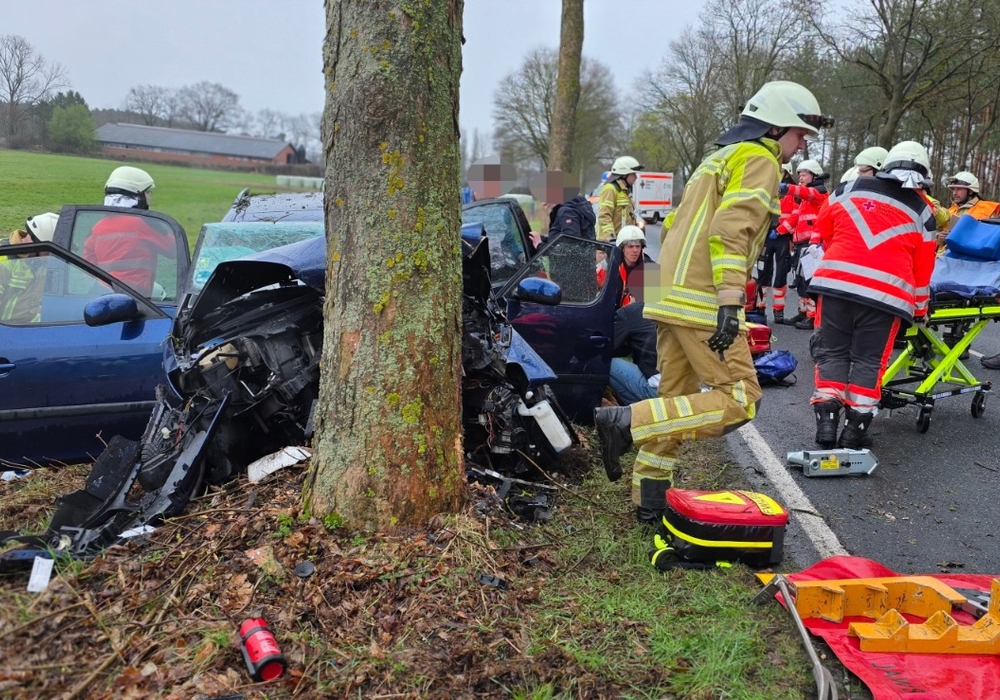 Die Feuerwehr unterstützte den Rettungsdienst bei der Versorgung der Verletzten und stellte den Brandschutz sicher. „Außerdem mussten wir den Beifahrer durch den Einsatz von Rettungsschere und Spreizer aus dem Fahrzeug befreien“, so der Ortsbrandmeister weiter. Die 30-jährige Fahrerin, der 49-jährige Beifahrer sowie ein neunjähriges Kind auf der Rücksitzbank wurden schwer verletzt in Krankenhäuser nach Gifhorn und Braunschweig gebracht. Eine 22-jährige schwangere Frau flog der Rettungshubschrauber Christoph 30 in das Klinikum nach Wolfenbüttel.