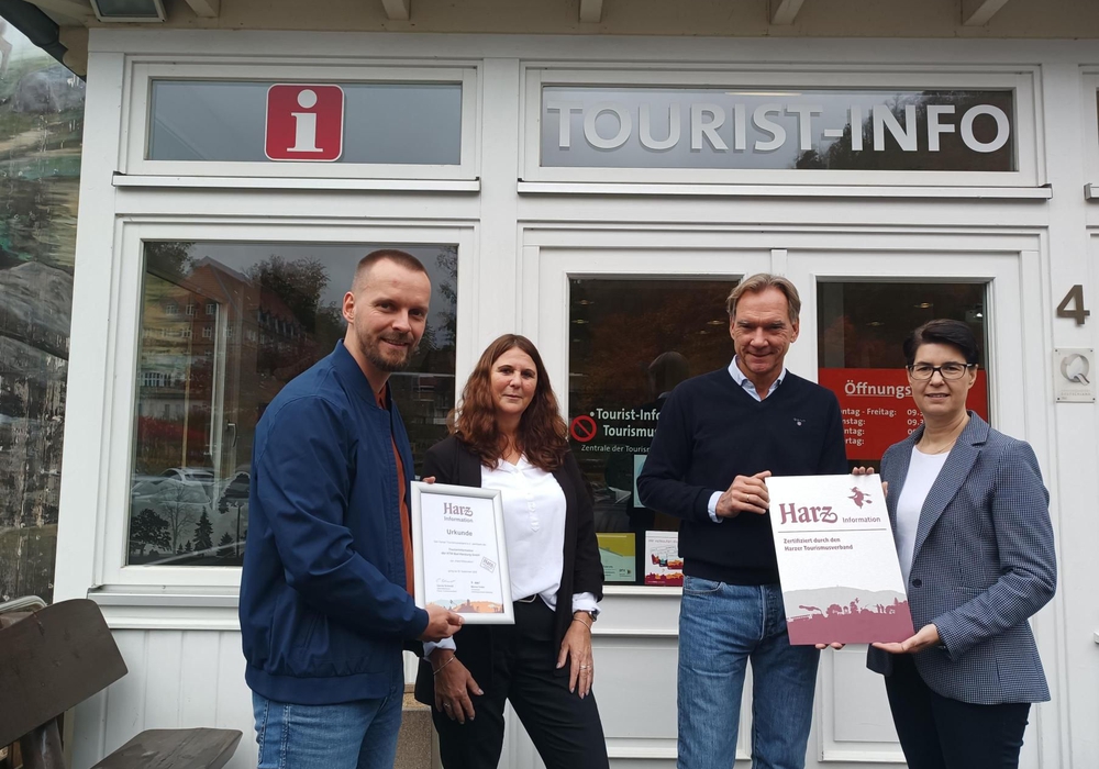 Christian Klamt ergänzte: „Ich freue mich sehr über die uns zuerkannte weitere Auszeichnung mit dem Zertifikat ‚Harz-Information‘ und bedanke mich bei Frau Dietrich, der Leiterin unserer Tourist-Information, und dem gesamten Team für ihre Arbeit, die diese Zertifizierung erst möglich gemacht haben. Neben der erst vor Kurzem abgeschlossenen sehr guten Bewertung des Deutschen Tourismusverbandes und der Zuerkennung der entsprechenden i-Marke zeigt das Prädikat ‚Harz-Information‘ die hohe Qualität unserer Serviceleistungen in der Tourist-Information Bad Harzburg.“