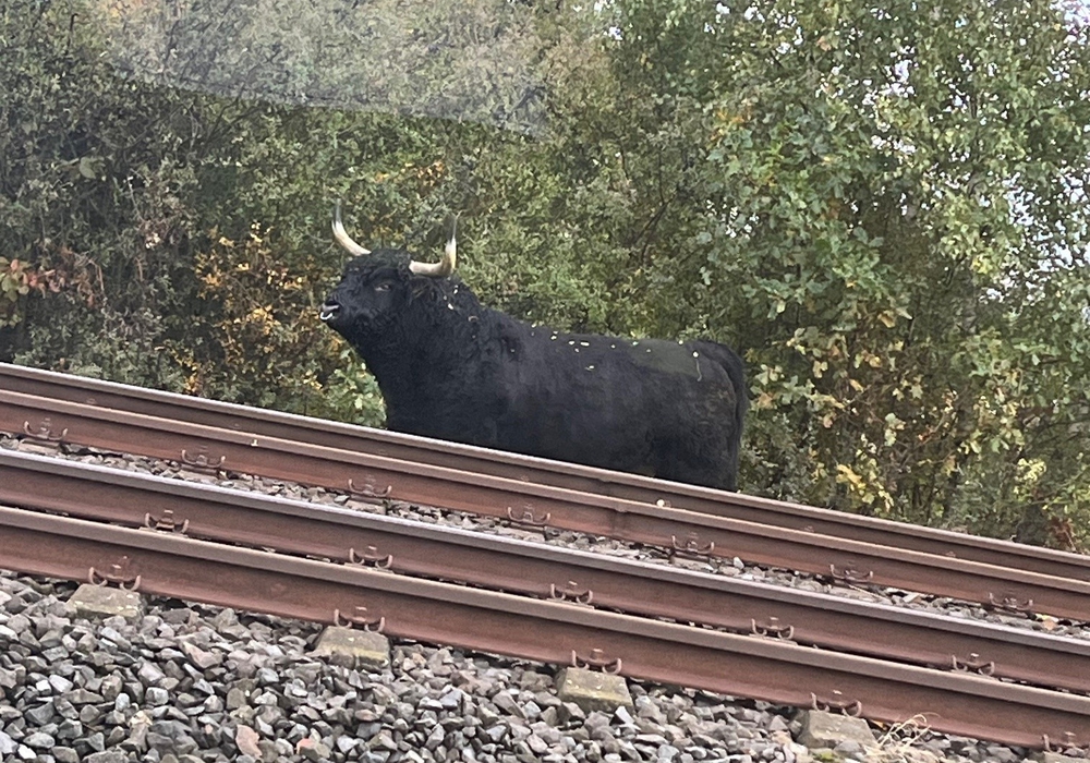 Gegen 10 Uhr hatte der verständigte Eigentümer den massigen Stier wieder sicher auf die Weide getrieben, bis dahin blieb die Trasse für den Zugverkehr gesperrt.