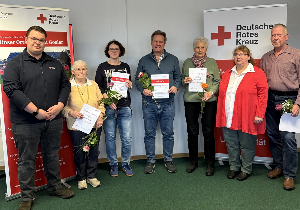 Ein besonderer Moment der Versammlung waren die Ehrungen langjähriger Mitglieder. Für ihre Treue und ihr Engagement wurden fünf Mitglieder für 25, 40 und sogar 50 Jahre Zugehörigkeit ausgezeichnet. Für 25 Jahre Mitgliedschaft wurde Stefanie Eichhorn geehrt. Bereits auf 40 Jahre Zugehörigkeit blicken der Leichtathletikclub Nordharz von 1974 e.V., vertreten durch Carsten Stiegler, sowie Olaf Christmann zurück und wurden hierfür ausgezeichnet. Ein ganz besonderer Dank galt Helga Bock und Margot Vieregge, die das Deutsche Rote Kreuz seit beeindruckenden 50 Jahren als Fördermitglieder unterstützen.
