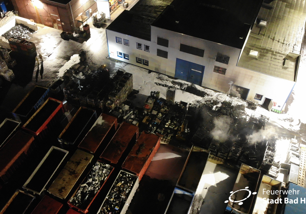 Auf dem Gelände standen mehrere Gitterboxen Elektroschrott in Flammen. Foto: Feuerwehr Stadt Bad Harzburg
