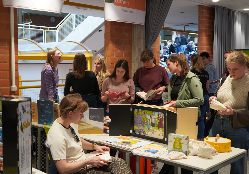 Voraussetzung ist stets, dass die Nutzung einem nicht-gewerblichen Zweck entspricht. Das erfuhren auch die Besucherinnen und Besucher der „Mini Medien Messe“, bei der diese die Gelegenheit hatten, einen Großteil dieser Technik selbst einmal auszuprobieren. Dabei konnten sie nicht nur die Medien- und Geräteausstattung in Augenschein nehmen, sondern auch darüber hinausgehende Angebote ausprobieren: Bleibende Erinnerungen in Form von selbstbedruckten Taschen schufen sie mit dem Plotter, am Computer probierten sie Lernspiele aus und beim Escape-Room zum Mitnehmen stellten sie sich kniffligen Rätseln, an deren Ende eine Belohnung wartete.