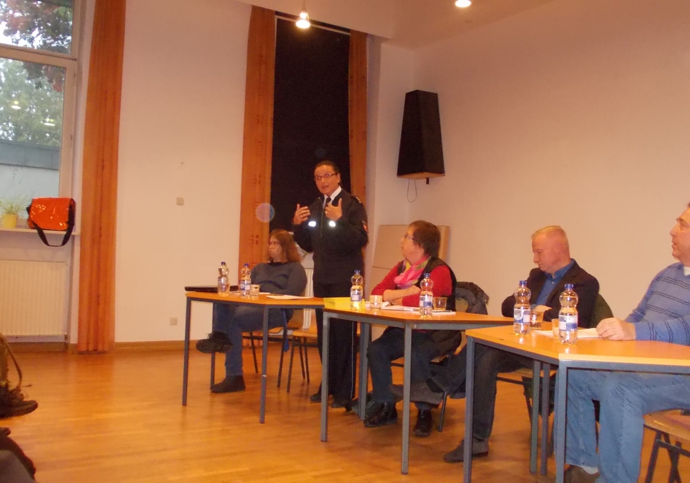 Polizeidirektorin Petra Krischker berichtete über Ihre Eindrücke aus Sankt Andreasberg. Die dort angekommenen Menschen sind größtenteils Familien mit Kindern, die Schreckliches erlebt hatten und sehr großen Strapazen ausgesetzt waren. Krischker erklärte, dass es bisher keine Auffälligkeiten im Bereich der Kriminalität gebe. Auch die Frage, ob IS-Extremisten unter den Flüchtlingen seien, verneinte sie. Dafür berichtete sie, dass deutsche Männer zum IS konvertierten und dort Verbrechen an Menschen begehen. Zwischenmenschliche Spannungen gebe es immer wieder, wenn 150 Menschen in einer Turnhalle zusammen leben und schlafen müssten.