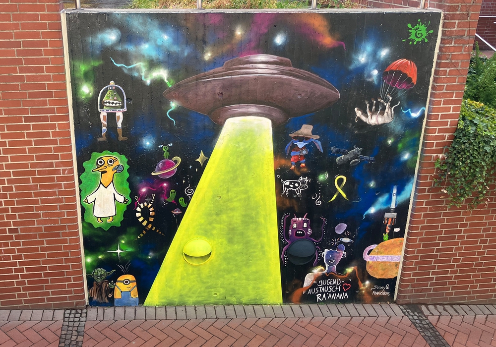 Bereits im April hatten Jugendliche aus Israel und Deutschland an gleicher Stelle im Rahmen einer internationalen Jugendbegegnung ein erstes Kunstwerk geschaffen – der Auftakt zu einer farbenfrohen Gestaltungsoffensive im Stadtgebiet.