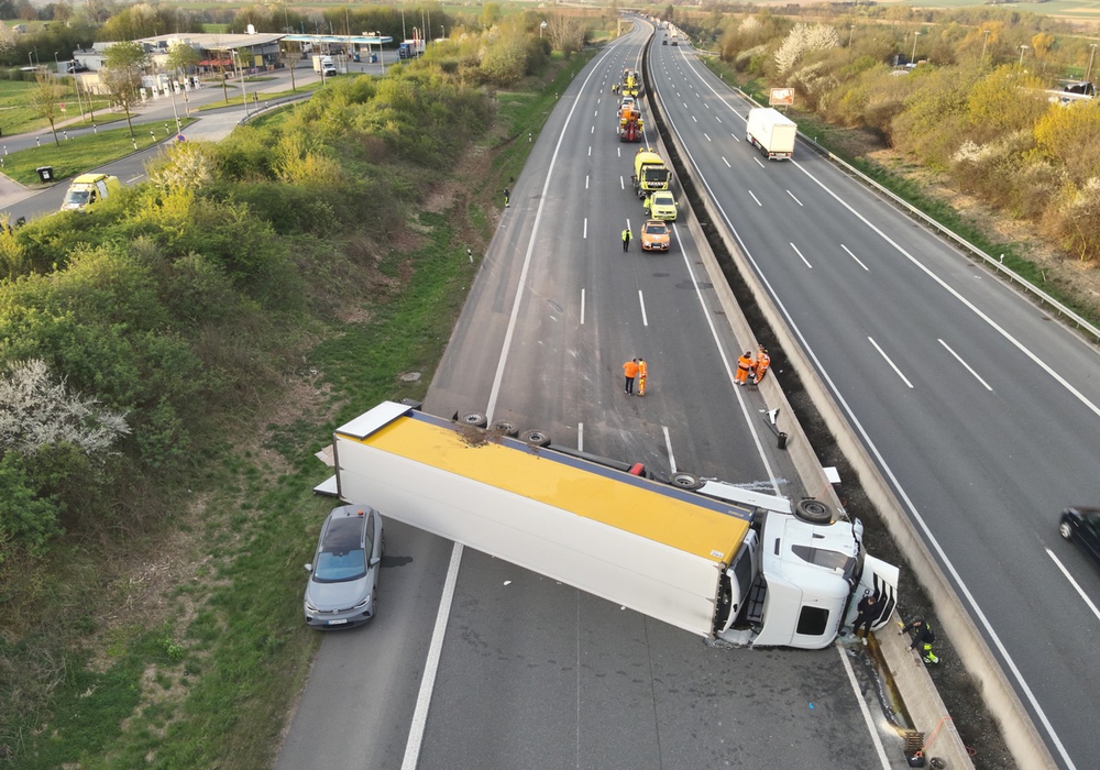 Gegen 3:30 Uhr befuhr ein 55-Jähriger aus Bremen die A7 in Richtung Hannover mit einem Sattelzug. In Höhe der genannten Unfallstelle kam der Fahrer aus derzeit nicht bekannter Ursache nach rechts von der Fahrbahn ab und geriet in den Grünstreifen. Anschließend fuhr der Sattelzug wieder zurück auf die befestigte Fahrbahn und kippte hier auf die rechte Seite. Der Sattelzug blockiert seither den Stand- sowie alle Fahrstreifen der Richtungsfahrbahn Hannover. Der Fahrer wurde durch den Verkehrsunfall in seinem Führerhaus eingeschlossen und konnte unverletzt befreit werden.