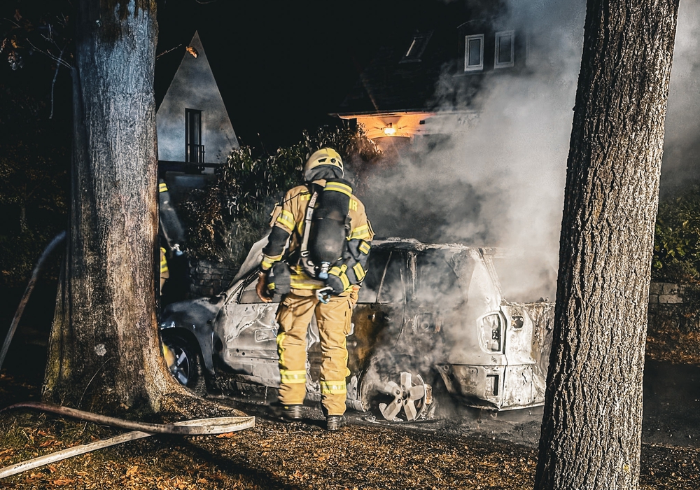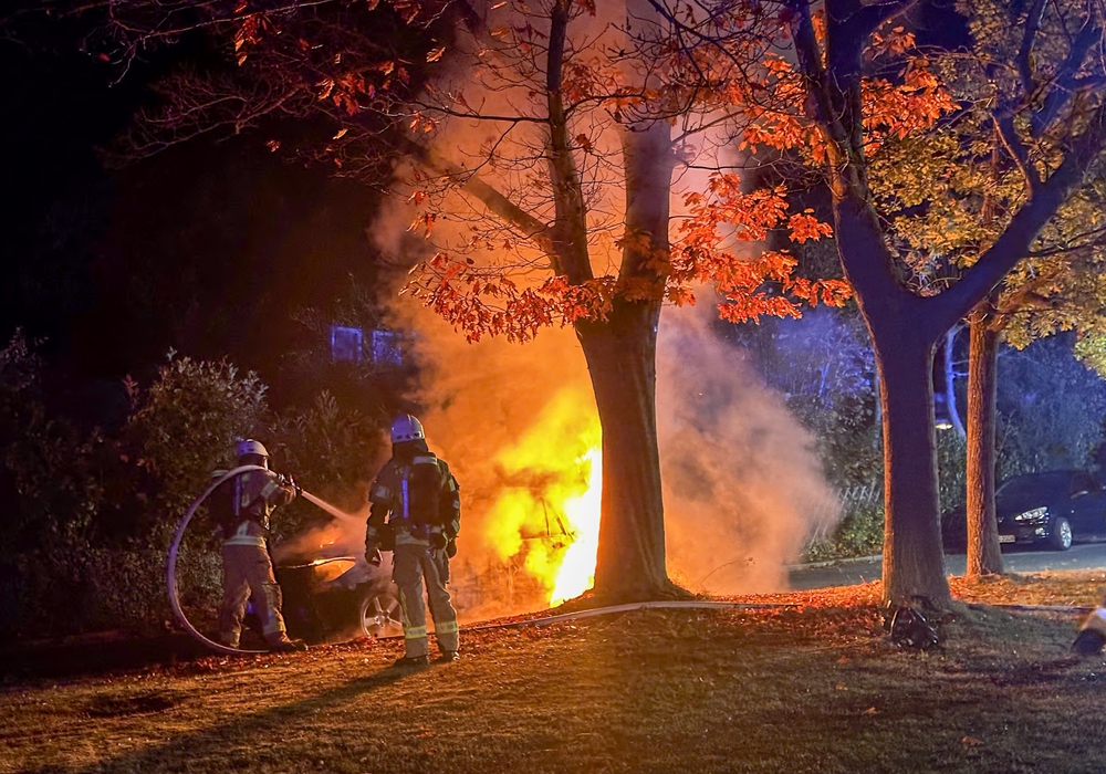 Gegen 1:54 Uhr wurde die Feuerwehr zu dem Brand alarmiert – bei Eintreffen stand das Auto bereits in Vollbrand. Ein Trupp unter Atemschutz nahm unmittelbar nach dem Eintreffen die Brandbekämpfung mit Wasser vor. Die massive Hitze- und Rauchentwicklung erschwerte zunächst die Löscharbeiten, dennoch konnte eine Ausbreitung des Feuers auf die Umgebung verhindert werden. Ein in der Nähe stehender Baum wurde durch die Wärmestrahlung beschädigt und zur weiteren Kontrolle an den städtischen Bauhof gemeldet.