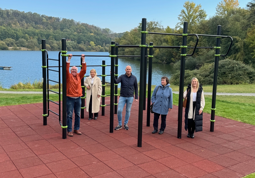 Im 2023 eröffneten Fitnesspark wurde eine neue Calisthenics-Anlage errichtet. Aufgrund von Kostensteigerungen konnten damals nicht alle ursprünglich geplanten Fitnessgeräte umgesetzt werden. In dreimonatiger Bauzeit wurde nun für rund 46.000 Euro eine hochwertige und wartungsarme Calisthenics-Anlage auf einer Fallschutzfläche von 65 Quadratmetern errichtet, die den Fitnesspark komplettiert.