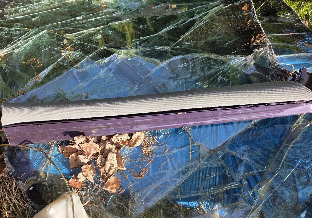 Hierbei handelt es sich um die Reste eines Audi A3 mit dem Produktionsjahr 2002. Auffällig sei die markante Lackierung der Karosserie in Lila / Violett metallic mit der Fachbezeichnung "Merlin Perleffekt" sowie eine nachträglich angebrachte Heckschürze in Schwarz. Weiterhin befand sich am Auto eine Kennzeichenhalterung mit der Aufschrift "Siebrecht".