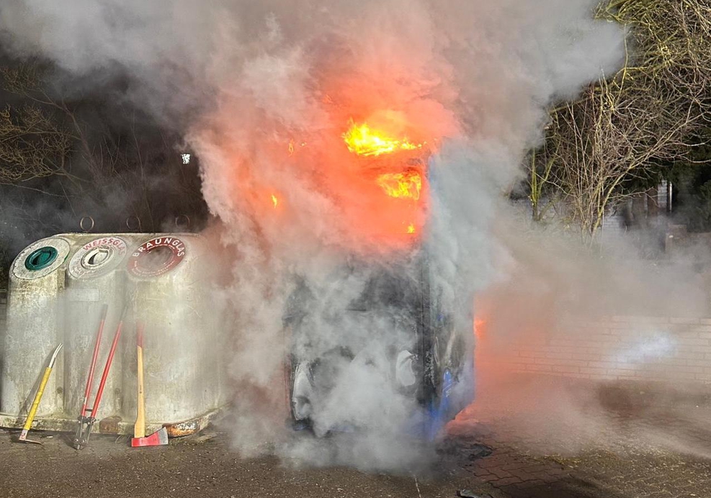 Helmstedt. Am Abend des heutigen Montags wurde der Feuerwehr um 20:54 Uhr ein brennender Müllbehälter in der Weimarer Straße gemeldet, Über den Einsatz berichtet die Feuerwehr Helmstedt.