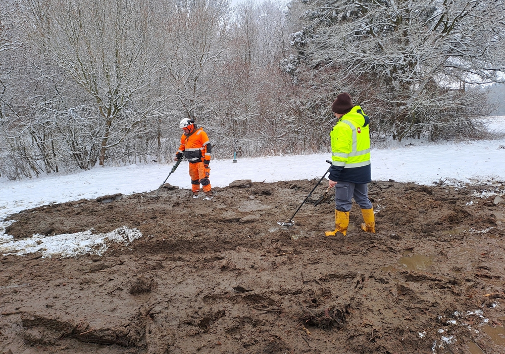 Baggern in Begleitung von Archäologie und Kampfmitteln