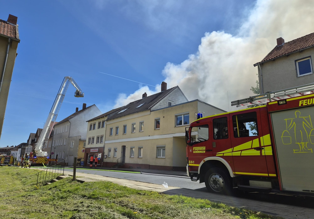 Schöningen. Am heutigen Donnerstagmittag um 12:28 Uhr wurden die Feuerwehren aus Schöningen, Hoiersdorf und Esbeck zu einem Gebäudebrand in die Burgstraße in Schöningen alarmiert. Bereits kurz nach der Alarmierung gingen Hinweise ein, dass sich möglicherweise noch eine Person im brennenden Gebäude befinden könnte.