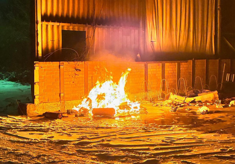 Vor Ort stellte sich heraus, dass unter einem Schleppdach Unrat in Brand geraten war. Die Feuerwehr löschte das Feuer zügig mit einer Leitung und konnte so eine Ausbreitung verhindern.