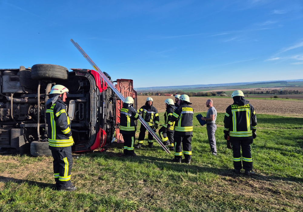 Helmstedt. Ein LKW war umgestürzt, die Feuerwehren der Samtgemeinde Heeseberg ausgerückt. Am gestrigen Mittwoch wurden die Einsatzkräfte zu einem Verkehrsunfall nach Wobeck alarmiert. Nach ersten Meldungen sollte sich etwas außerhalb der Ortschaft, direkt unterhalb des Höhenzugs Elm, ein umgestürzter Lkw befinden, in dem sich noch eine Person befinden sollte.