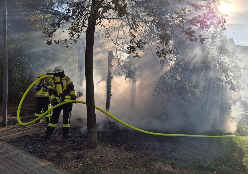 Noch vor dem Eintreffen der Feuerwehr waren der Unterstand und das dort abgestellte Dixi-Klo fast vollständig zerstört.