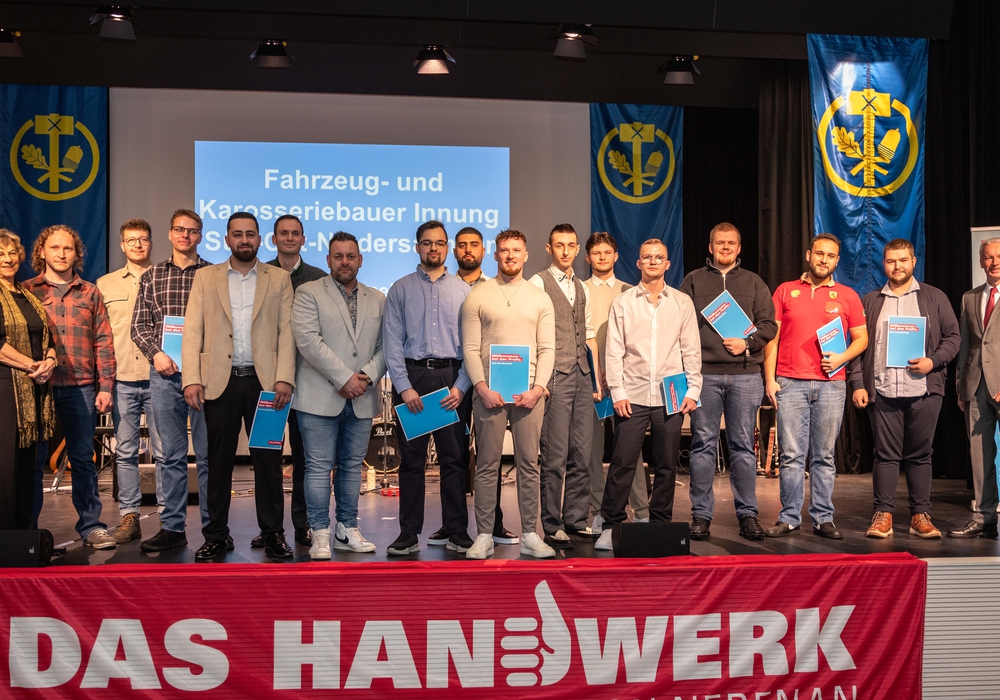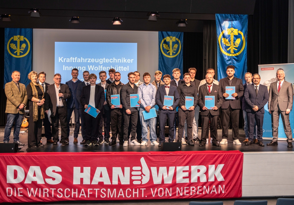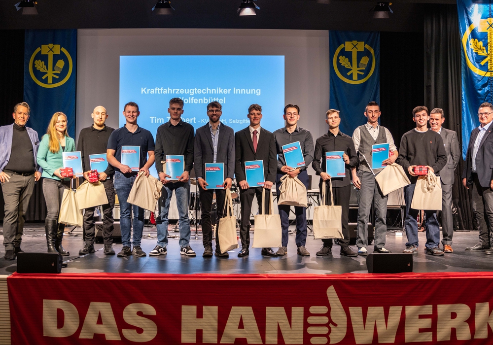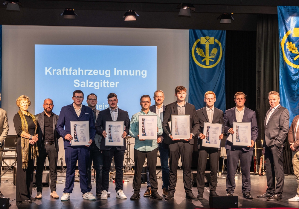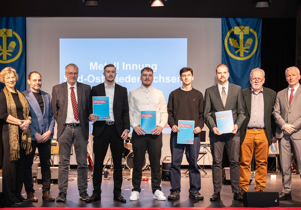 Als Prüfungsbeste wurden geehrt: Anita Wehn (Jan Hölemann in Salzgitter), Hagen Kronauer (J. Christoffers GmbH), Janis Barels (Peinemann & Sohn GmbH Co. KG) und Laurenz Aßmann (Helmut Hannig GmbH & Co. KG in Salzgitter) (alle