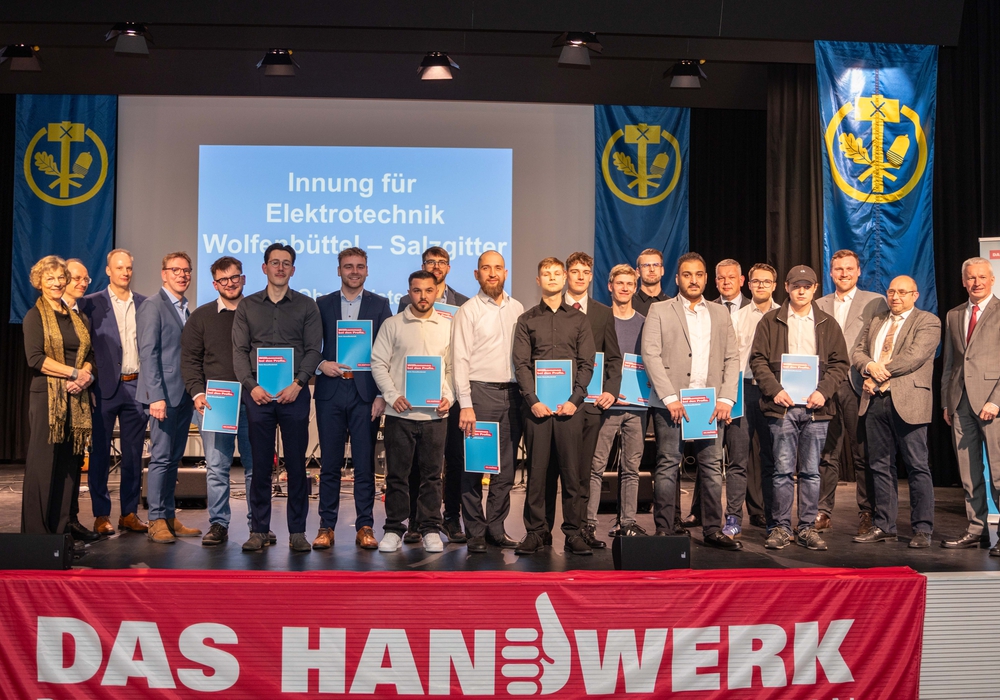 Obermeister Michael Lindhofer von der Innung für Elektrotechnik Wolfenbüttel-Salzgitter freute sich darauf, 17 junge Elektriker freizusprechen. Als einzige Innung hat die Innung für Sanitär-, Heizung-, Klima- und Klempnertechnik Wolfenbüttel-Salzgitter weiblichen Nachwuchs vorzuweisen: Der stellvertretende Obermeister sprach zwei junge Gesellinnen frei – insgesamt zehn junge Anlagenmechaniker.