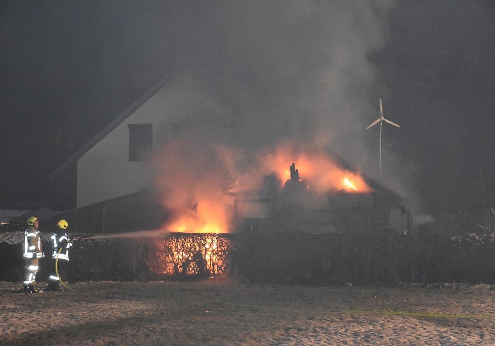 Mit einem Großeinsatz von 65 Kräften der Freiwilligen Feuerwehr Lemwerder und der Drehleiter aus Ganderkesee konnte verhindert werden, dass die Flammen auf das Wohnhaus und einen Geräteschuppen übergriffen.