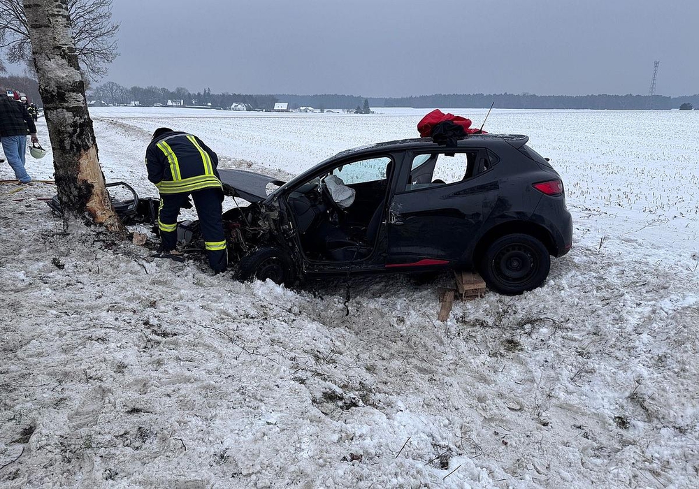 Ein Pkw war gegen 11:34 Uhr von der Straße abgekommen und hatte einen Baum gerammt.