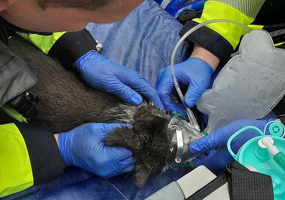 Die Einsatzkräfte erfuhren, dass sich noch eine Katze in der Wohnung befand. Zwei Trupps unter Atemschutz gingen vor und retteten das Tier. Die Katze wurde sofort mit Sauerstoff versorgt, von Spezialkräften stabilisiert und zur Behandlung in die Tierärztliche Hochschule gebracht.