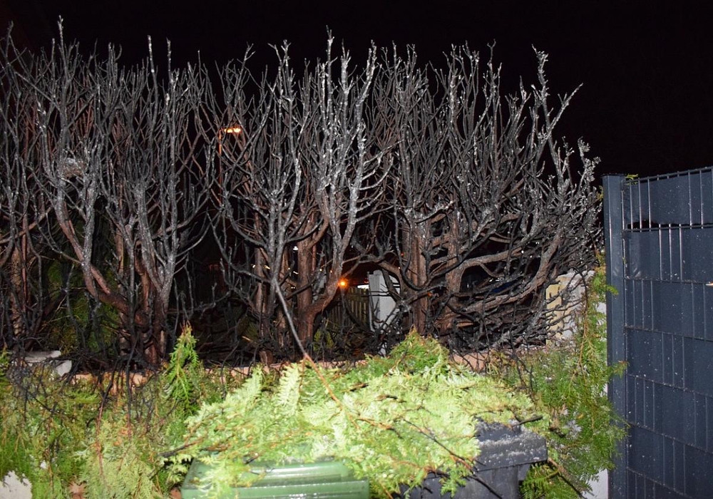 Eine hohe Zierhecke und ein Zaun gerieten dabei in Flammen.
