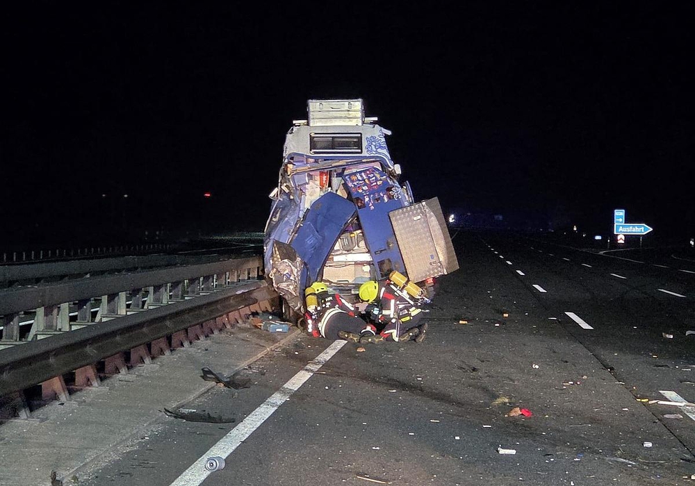 Sottrum. Ein nächtlicher Verkehrsunfall auf der Autobahn 1 bei Sottrum im Landkreis Rotenburg (Wümme) hat zu einem größeren Feuerwehreinsatz geführt. Wie die Feuerwehr der Samtgemeinde Sottrum mitteilte, kam es in der Nacht auf Sonntag, kurz nach Mitternacht, in Fahrtrichtung Bremen hinter der Rastanlage Grundbergsee zu einem schweren Zusammenstoß.